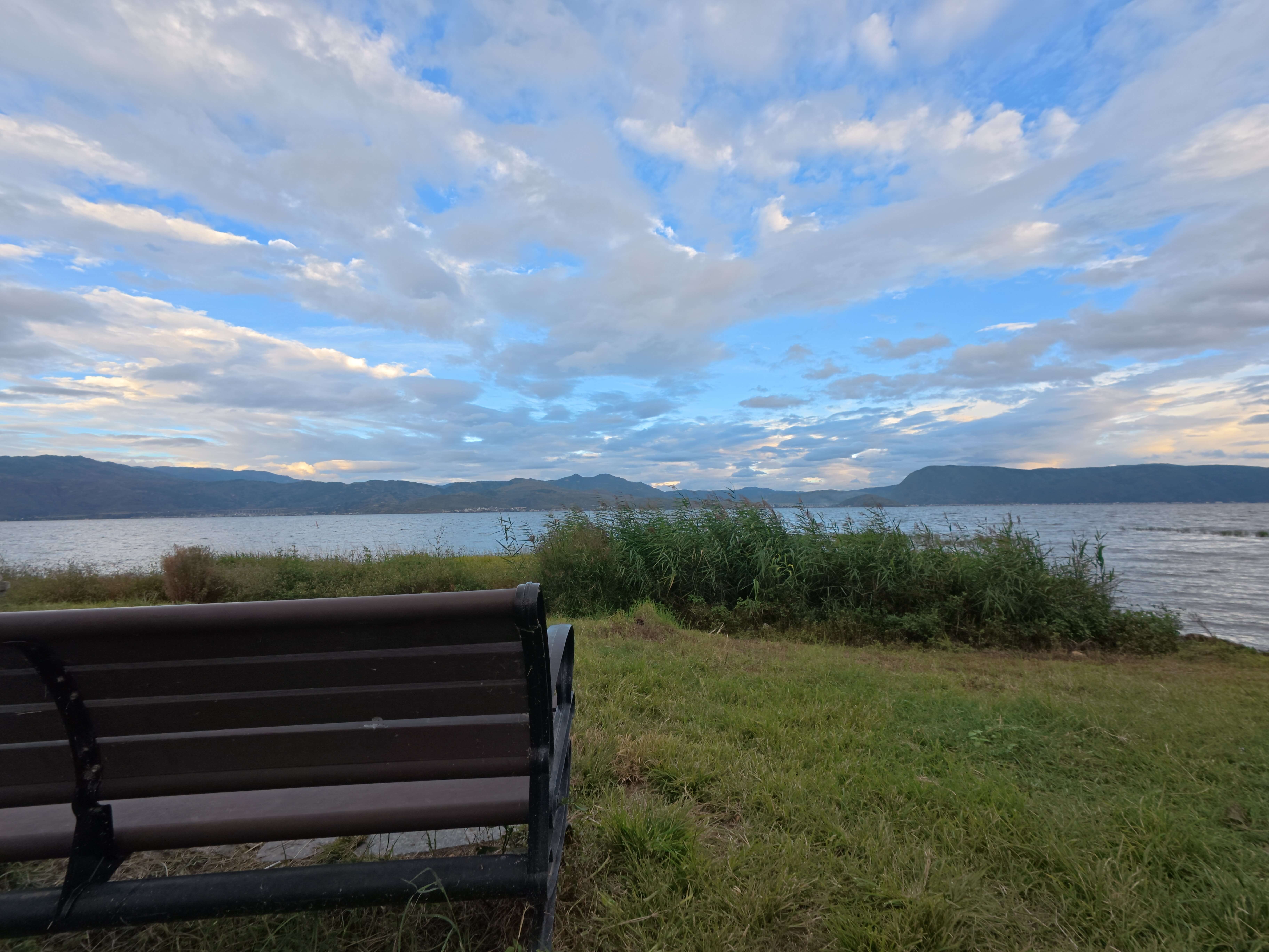 首先不得不提的就是洱海。我们主要是租电动车在海西的生态廊道骑行了将近一大半的距离。除了网红S湾之外其他地方人都不是很多,骑行几乎是畅通无阻。当然还有一个前提是天气——做攻略的时候看到很多旅居和当地人说大理经常下雨,但因为风大所以大多时断时续,这种天气往往也会伴随彩虹。十一假期的前三天大理一直阴雨绵绵,去之前还一直担心天气,但等到后几天已经是雨后初霁。