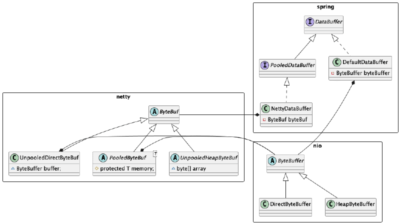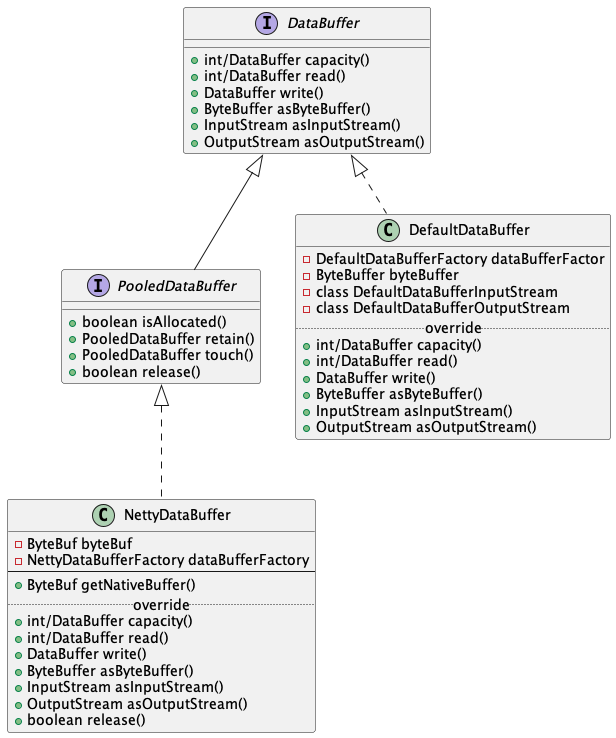 - The NettyDataBuffer defines the member variable ByteBuf, which is implemented through the netty object